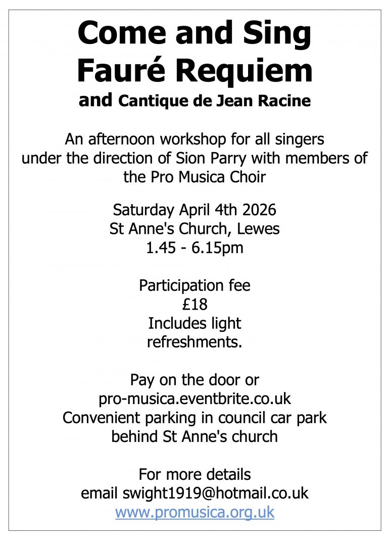 Follow us on Facebook @Pro Musica Lewes
